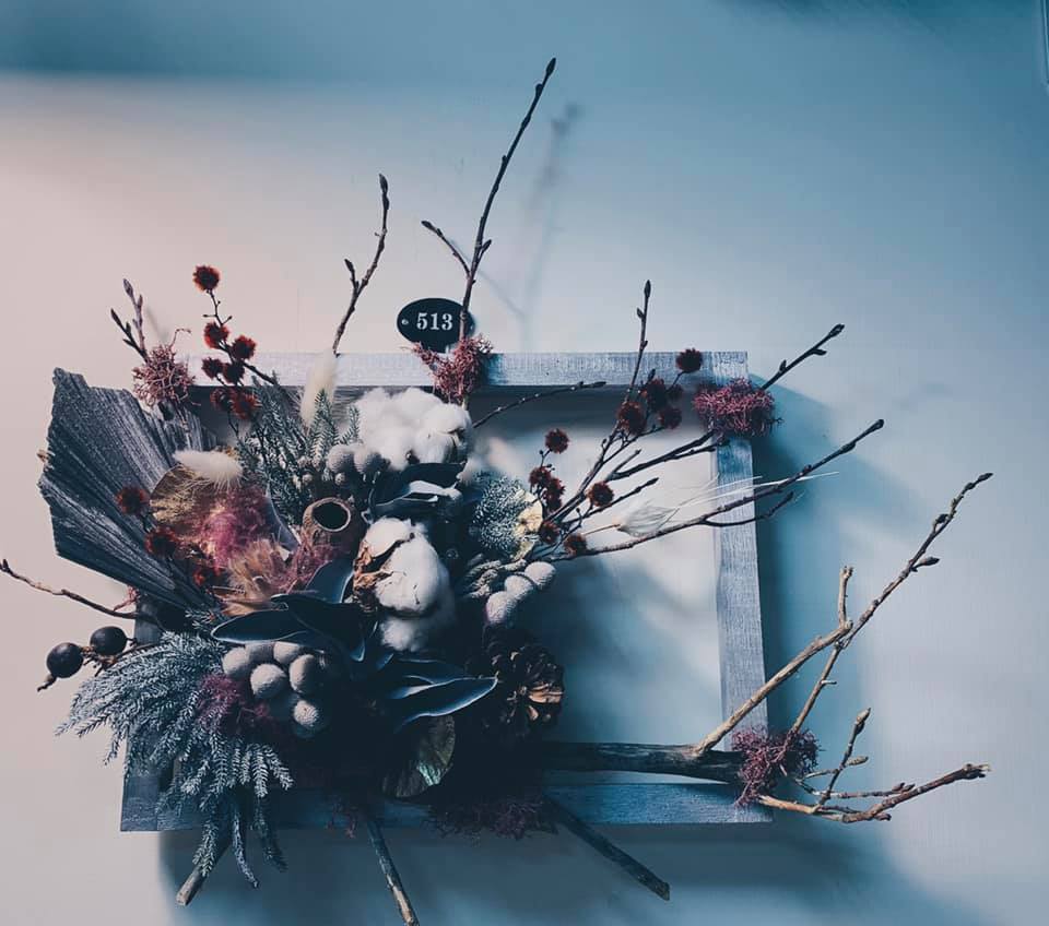 麋迷的花框主角就是乾燥花,作品就是單純表現花的姿態