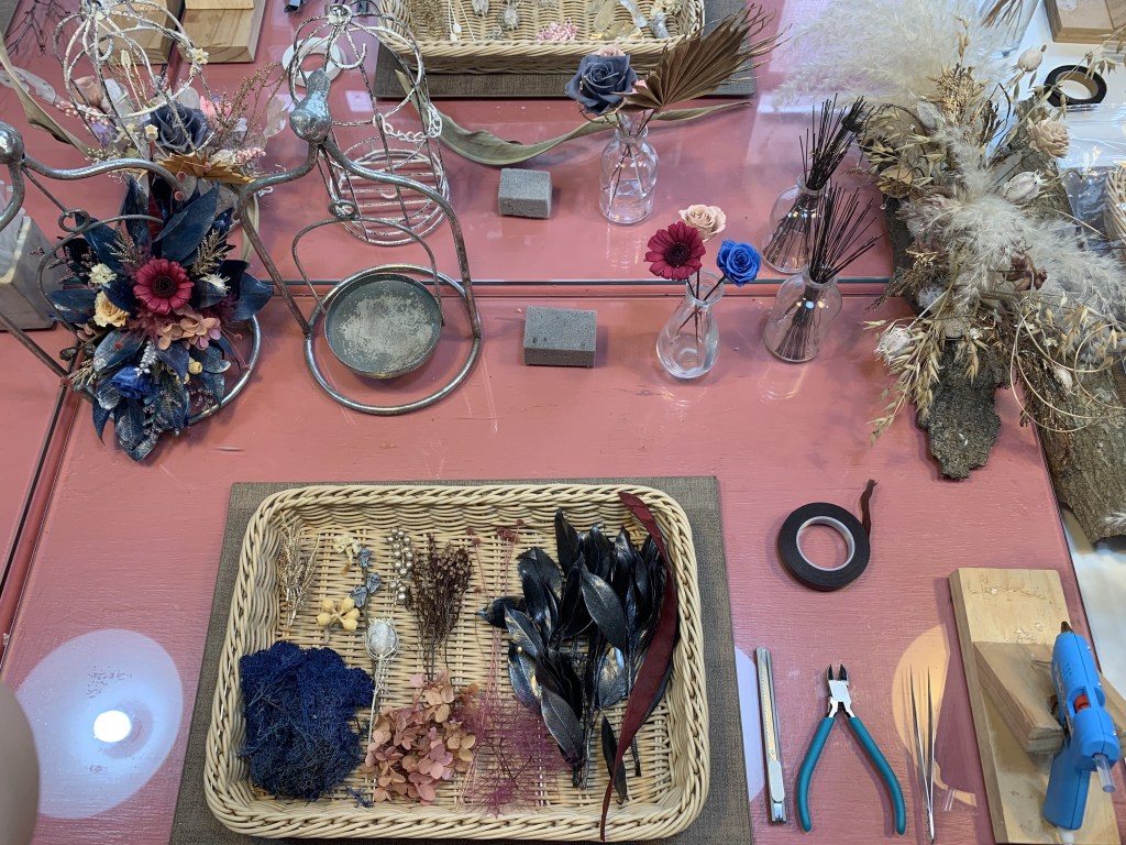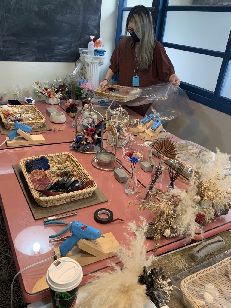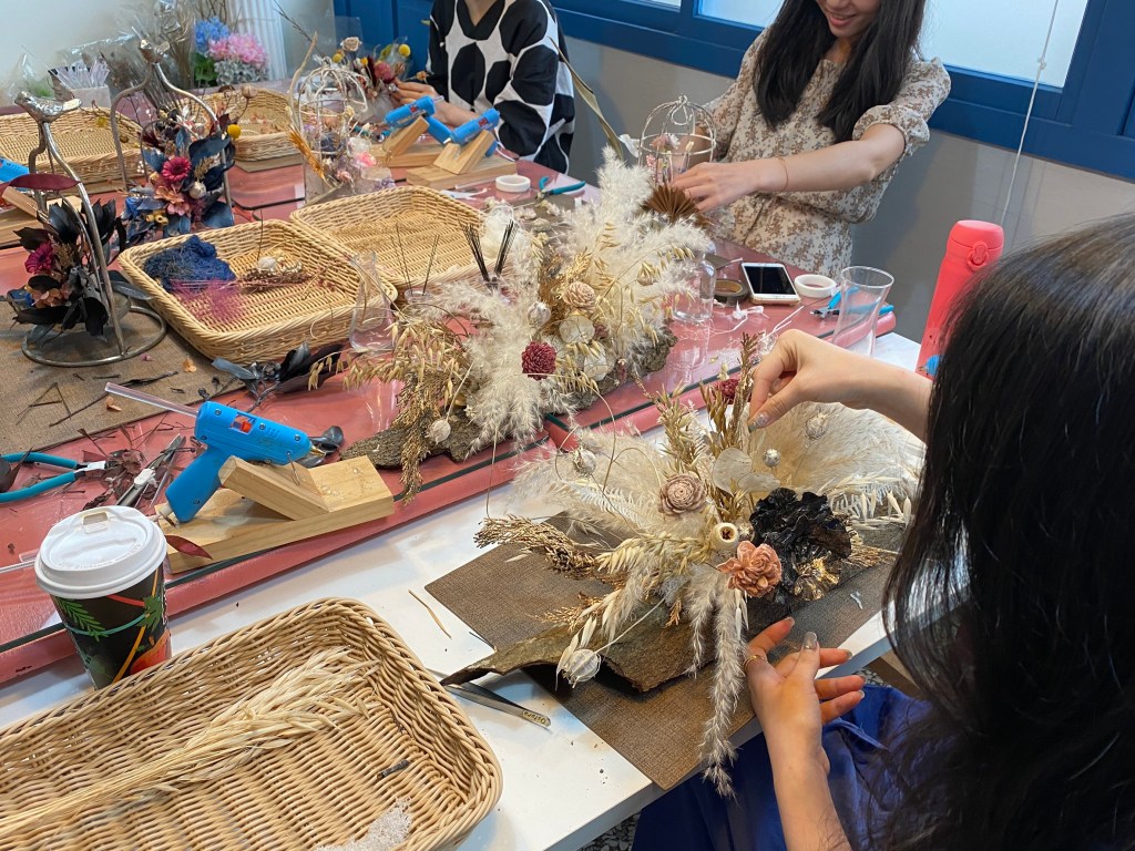 一進教室,嬌小的Q泥老師正張羅著大家的花材